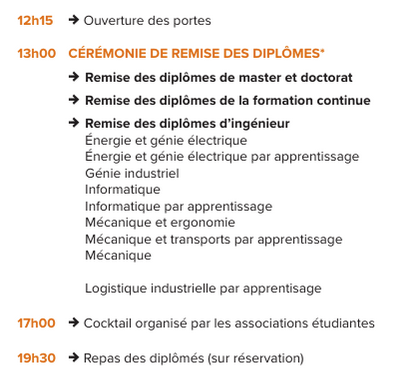 Par ailleurs, le diplôme remis lors de la montée sur scène n’est pas le véritable diplôme ! Votre document officiel vous sera remis en fin de cérémonie.