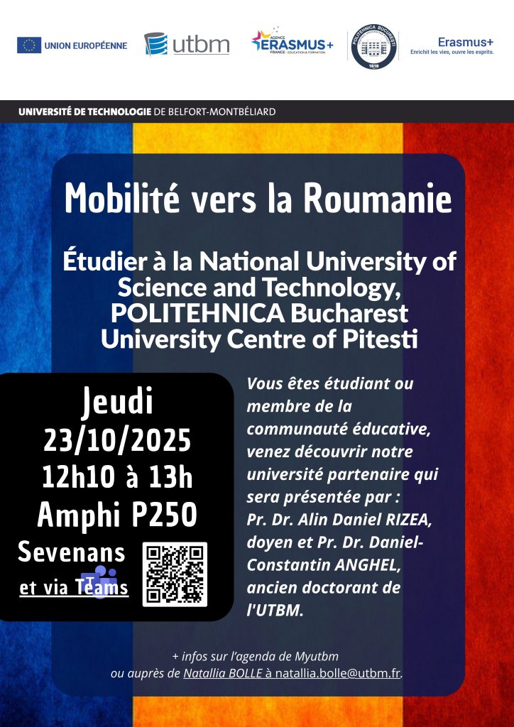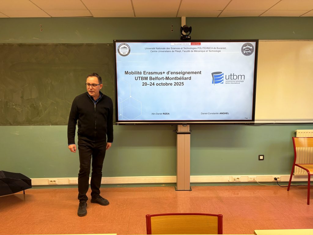 La coopération entre la Faculté de Mécanique et Technologie (FMT) de l’Université Nationale des Sciences et Technologies POLITEHNICA de Bucarest – Centre Universitaire de Pitești – et l’Université de Technologie de Belfort-Montbéliard (UTBM) repose sur une relation scientifique de longue durée, initiée dans le cadre de la thèse de doctorat en cotutelle de Daniel-Constantin Anghel (Université de Pitești / UTBM, 2007).