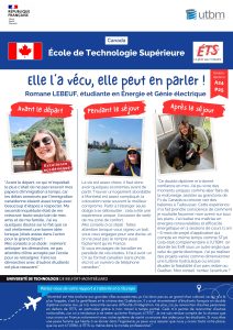 Direction le Canada avec Romane Lebeuf, étudiante en énergie et génie électrique de l’UTBM qui vient de terminer son double diplôme à l’École de technologie supérieure (ÉTS)…