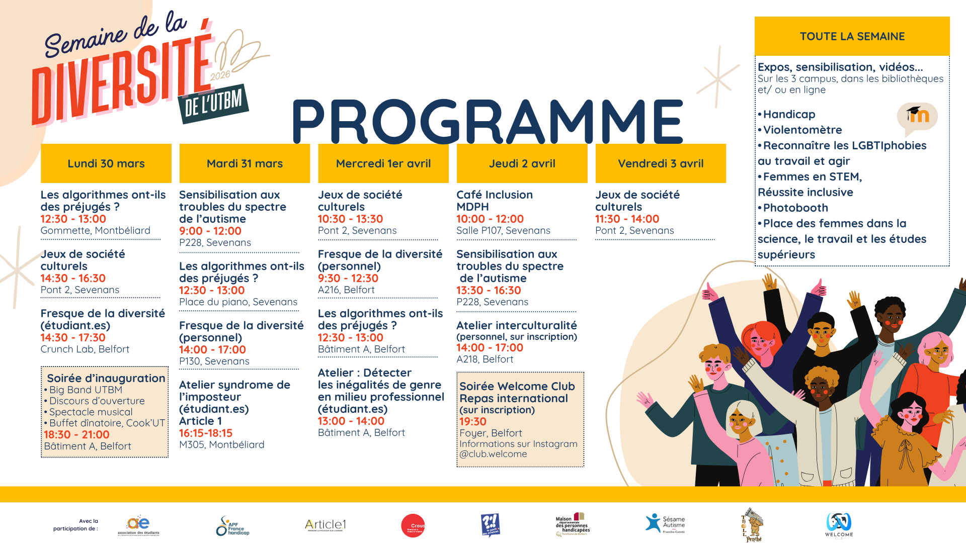 Étudiants et personnels sont invités à participer à des activités autour de l’égalité femme-homme, du handicap et de l’inclusivité.